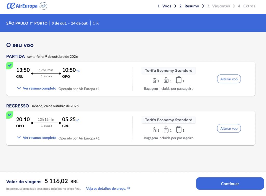 Nossa expedição tem início e fim na cidade de Porto, em Portugal. Você deve se programar para chegar e partir de lá. Deixamos aqui uma sugestão de passagem aérea saindo de Guarulhos (GRU) e chegando em Porto (OPO).